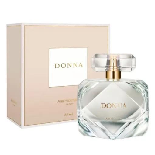De origem italiana, a palavra ?Donna? faz referência à mulher, trazendo o poder feminino. Um nome imponente, assim como a apresentadora Ana Hickmann, que foi especialmente escolhido para personificar seu novo perfume com tradução a sua personalidade. Donna traz notas aromáticas especiadas que conferem um toque de minimalismo, mas ainda assim, se mantém como uma fragrância marcante, glamourosa e sofisticada. A sofisticação, feminilidade e poder da apresentadora Ana Hickmann foram predominantes no desenvolvimento de Donna, ?A ideia é mostrar que o poder está em nós mesmas, e que todas as mulheres podem ser o que quiserem. Em relação às notas olfativas, dessa vez quisemos trazer uma combinação de um perfume que pode ser imponente e clássico, sem ter a necessidade de ter notas com apelo sensual. Unimos minimalismo, glamour, poder e sofisticação no mesmo frasco e assim tivemos uma fragrância marcante e memorável?, revela Ana Hickmann. Desenvolvido pela casa de fragrâncias Givaudan, o perfume tem o frasco transparente em formato quadrado com as pontas arredondadas, seguindo o conceito minimalista e sofisticado que foi atribuído ao perfume.A Fragrância:Notas de Cabeça: Bergamota da Itália, laranja do Brasil e frutas amarelas trazem uma combinação mais refrescante e cítrica para o topo da fragrância.Notas de Coração: Freesia, Rosa, Rosa Damascen e Iris do vale, trazem o toque floral para a fragrância.Notas de Fundo: Credo, Musk e Âmbar branc entram em sintonia e formam o fundo da fragrância.