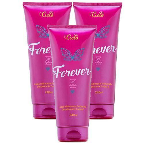 Fantasy Loção Hidratante Corporal Perfumada Ciclo CosméticosPack Especial com 03 unidades de 240ml*ATENÇÃO: a Ciclo está alterando o nome dos produtos da linha "Fantasy", que passam a se chamar "Forever". O mesmo produto, com novo nome.Como a mudança está acontecendo aos poucos, é possível que ao adquirir algum kit ou mais de uma unidade de qualquer produto desta linha, você receba parte do seu pedido com o nome de "Fantasy" e parte com o nome "Forever".*Um hidratante envolvente, com todo o charme da fragrância Fantasy em versão hidratante de rápida absorção. Hidrata e perfuma sua pele. Para quem gosta de curtir a vida com charme e alegria, Fantasy loção hidratante tem a fragrância ideal. Com notas de lichias, marmelos dourados e kiwis combinadas ao buquê floral de pétalas de jasmim e orquídea com o toque adocicado do chocolate branco, sua pele fica macia e perfumada muito mais tempo. O segredo da durabilidade da fragrância da loção hidratante corporal Fantasy está na superconcentração de essência da fórmula, garantindo pele macia e perfumada por muitas horas. A Fragrância:Notas de Saída: Côco, Ameixa, Damasco, AldeídoNotas de Corpo: Pimenta, Lírio do Vale, Tuberosa, Jasmim, SambacNotas de Fundo: Sândalo, Jacarandá, Fava Tonka, Vanilla, Musk Outras Informações Importantes:- Não testado em animais- Todos os dados desta descrição foram informados pelo fabricante / fornecedor do produto- A imagem ilustra o produto no momento que foi cadastrado, podendo ser alterada pelo fabricante sem prévio aviso