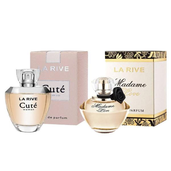 O kit contém dois perfumes La Rive sendo, um Cuté 100ml e um Madame in Love 90ml feminino, com uma excelente fragrância e fixação: Cuté Woman Eau de Parfum da marca La Rive é um perfume feminino de aroma especial, único e remete à doçura e ao romantismo tipicamente femininos com um toque divertido e ligeiramente atrevido...O perfume feminino Madame In Love Eau de Parfum é um maravilhoso floral que transmite um luxuosidade e modernidade. Madame in Love é uma fragrância inspirada nas princesas do passado, presente e futuro, com um toque de poder e sensualidade.